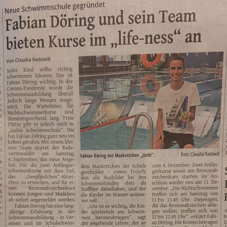 Fabian hatte die Idee zur Gründung einer eigenen Schwimmschule. Er wollte jedem Kind die Möglichkeit bieten, bei Joshi mit viel Spaß und Abeneteur Schwimmen zu lernen. Von dort an wurden Ideen und Konzepte zur Umsetzung des großen Projekts entwickelt.